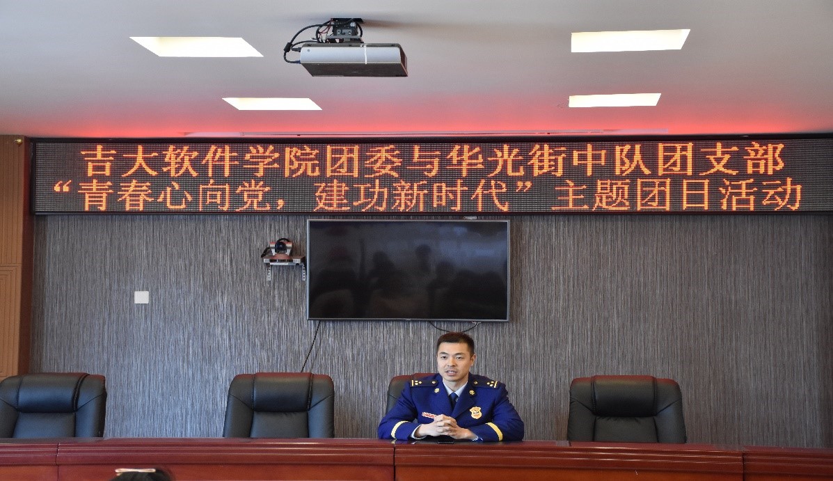 4月19日,w66旗舰厅18级辅导员王震老师带领三十余名同学在长春市高新区消防大队开展了“青春心向党,建功新时代”的主题团日活动。