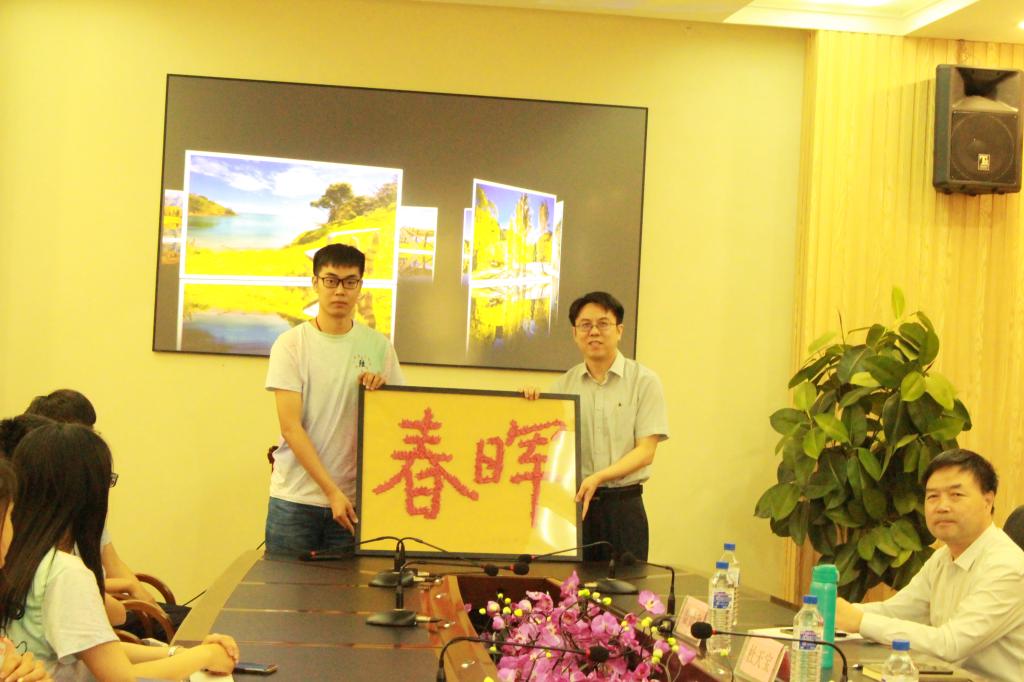 在活动的最后, 551506班班长姜钧译代表班级向公司赠送礼物,礼物由团支部全体同学参与制作的520只纸鹤构成,共同拼成“春晖”字画,“春晖”二字形容母爱,取自古诗“谁言寸草心,报得三春晖”,在这里用来表达团支部同学对于母校的爱,这件礼物凝聚着毕业生同学拳拳爱校之情,最后,全体师生共同合影留念,活动在温馨的氛围中走向尾声。