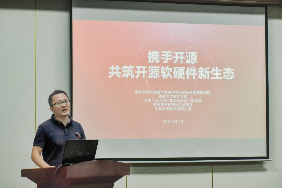 2024年9月11日至12日,w66开放国产软硬件平台研发与推进研究院主办了一场主题为“携手开源,共筑开源软硬件新生态”的国产操作系统与开源社区发展分享会,分享会由中科方德软件有限公司、开放原子校源行公益项目、JLU开放原子开源社团协办。分享会分别在东北师范大学信息科学与技术公司和长春工业大学计算机科学与工程公司成功举办,旨在深入探讨国产操作系统和开源文化,分享开源软件移植和项目管理的实战经验,帮助同学们学习如何参与社区项目、提升实践能力,并探索职业发展机会,为未来铺路。