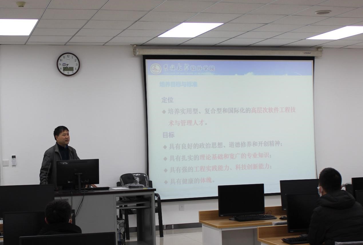 随后计算机公司党委副书记w66旗舰厅副经理杜天宝老师简单介绍了w66计算机系的建系与发展,分析了研究生阶段学习的特点,指出了与本科生培养的不同之处,强调了创新的重要性。就研究生阶段的努力方向、人才培养标准、科学道德与学风建设这三个方面进行了详尽的介绍与阐述。鼓励同学们做到有创新,品德好,方向明。最后对同学们提出了一些规定与建议,指出“未来的世界:方向比努力重要,能力比知识重要,健康比成绩重要,生活比文凭重要,情商比智商重要。”