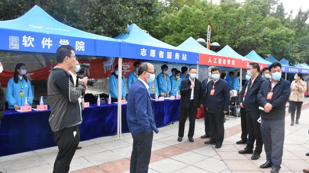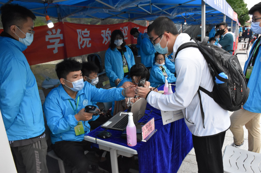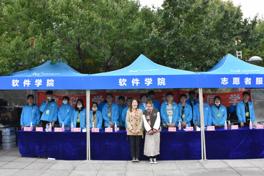 迎新帐篷下,志愿者们身着蓝色工作服,为新同学提供人脸录入、报到码扫录、报道资料袋发放等接待服务。针对一些家庭困难的新生,公司还开通了“绿色通道”,志愿者耐心地为他们讲解助学贷款申请办理等相关事宜。在这个疫情防控仍不能掉以轻心的特殊时期,公司还贴心地为新生们准备了防疫“健康包”。虽然这几日天气转凉,秋风习习,甚至一度下起大雨,但志愿者们的热情从未消减,始终尽心尽责地为新生们解疑答惑,让他们感受到软件大家庭的温暖。