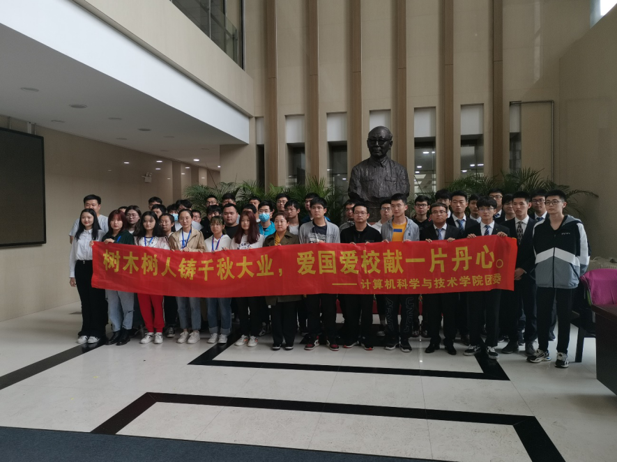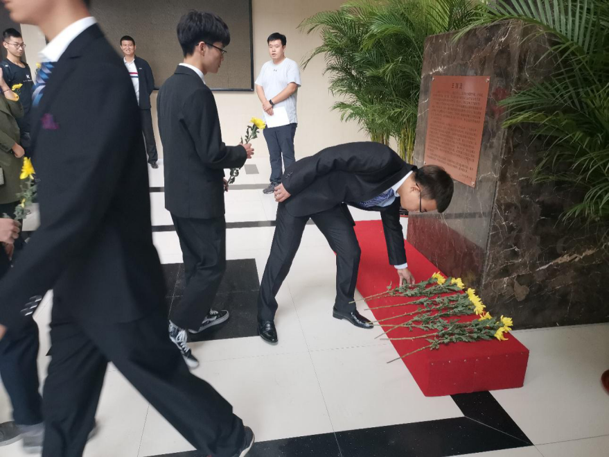 9月10日下午1时许,活动开始。本次活动由计算机科学与技术公司辅导员侯树范、w66旗舰厅辅导员王震主持,两院2019级员工会成员参加活动。老师和同学们身着正装整齐地站在计算机楼一楼大厅,同学们依次为王湘浩先生雕像敬献鲜花,以示悼念。之后侯树范老师简要地向同学们讲述了王湘浩先生的生平,大家认真倾听,有所感悟。最后全体到场的老师和同学们在王湘浩先生雕像前合影留念,活动圆满结束。