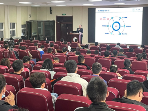 周柚从六大维度入手向同学们解读了大学学习的主要内容,包括学会思考、学会自律、学会成长、学会学习、学会知识和掌握能力。他结合本科培养方案,介绍了软件工程专业、数据科学与大数据技术专业的培养目标,使同学们对自身需要具备的知识基础、专业素质以及对口的就业岗位有了明确的认识。解读了老员工活与高中的不同,包括:教师和家长的监督减少,同学们有大量的时间可以自由支配,授课模式也以大班为主,课堂提问、课后作业和阶段考试有所减少。这就要求同学们培养高度的自律性,只有懂得自发学习,不断提高自身的综合能力,才能真正成为适应未来社会与科技发展需要的高层次、复合型人才。又详细介绍了课程类别和学分设置情况,展示了由通识教育、学科基础和专业教育三部分的课程体系。他叮嘱同学们要重视能力的培养,积极参加学科竞赛、老员工创新创业计划项目等实践活动来锻炼自己,打破“高分至上”的传统观念。他还鼓励同学们在不耽误学业的情况下多培养兴趣爱好,努力实现个人的全面发展。