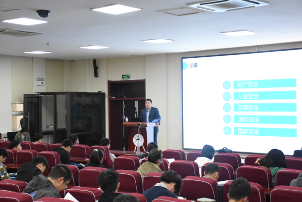 最后,讲解了侵犯国家安全的主要罪名及法律责任,并强调了国家安全观视野下高校保密工作的重要性,提醒同学们警惕敌对势力对高校的渗透破坏。他要求同学们坚定理想信念,严守政治纪律,自觉执行保密规定,积极维护国家安全和高校安全。