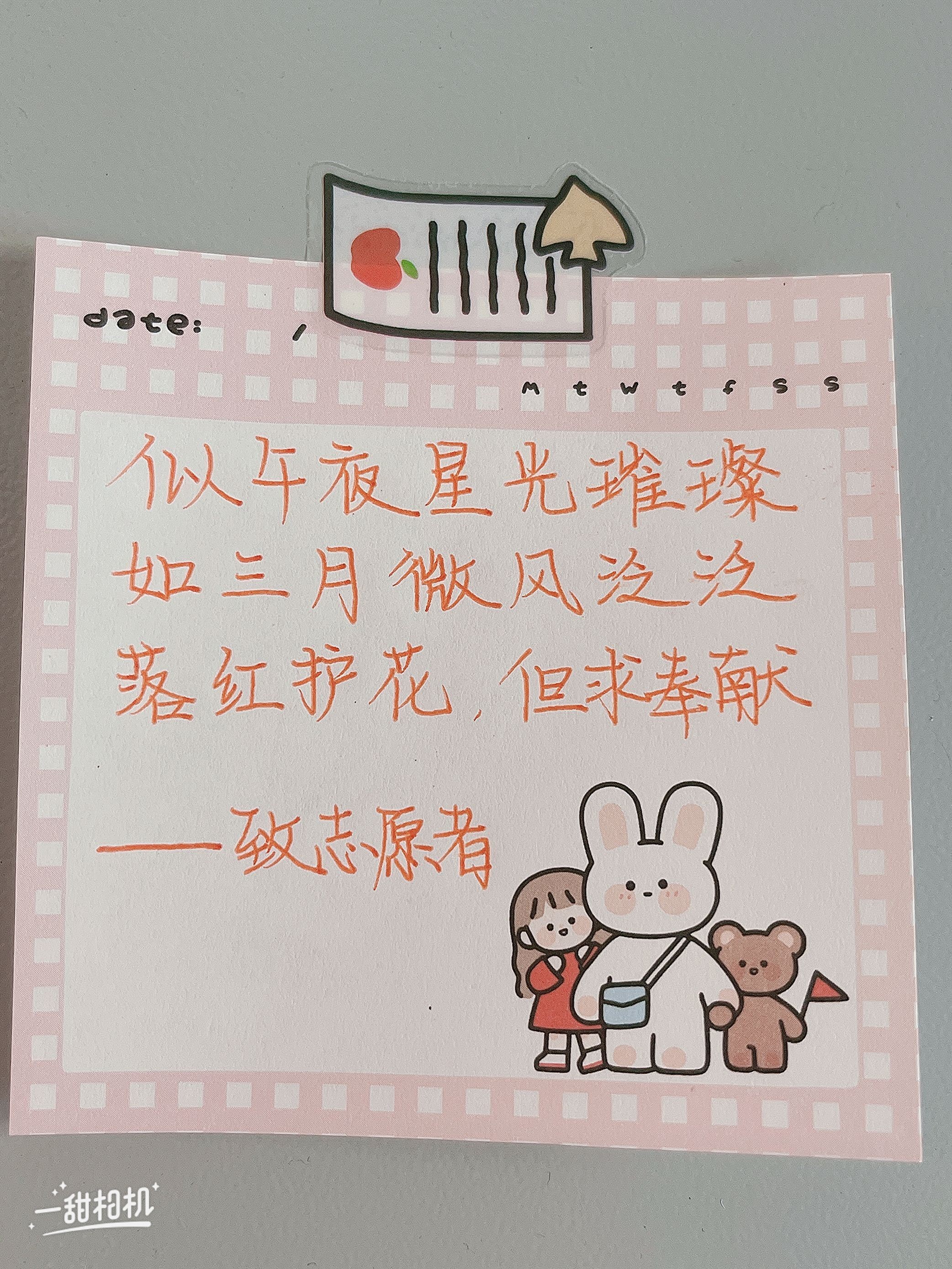 行行文字驱散了疫情的阴霾,浓浓真情筑建起抗疫的高墙。本次活动体现了同学们奉献、友爱、互助、进步的新时代青年精神,彰显了校园防疫阶段的集体凝聚力、向心力,传递了保卫校园不可动摇的决心。同学们通过此次寄语活动对志愿服务工作有了更加深刻的理解,同时也更加体会到志愿者的辛勤和不易,为他们加油助力。只要大家坚定信念、同舟共济、全力以赴、科学防治,相信在志愿者的共同努力和同学们的积极配合下,疫情终会可控,春暖花开必将如期而至。