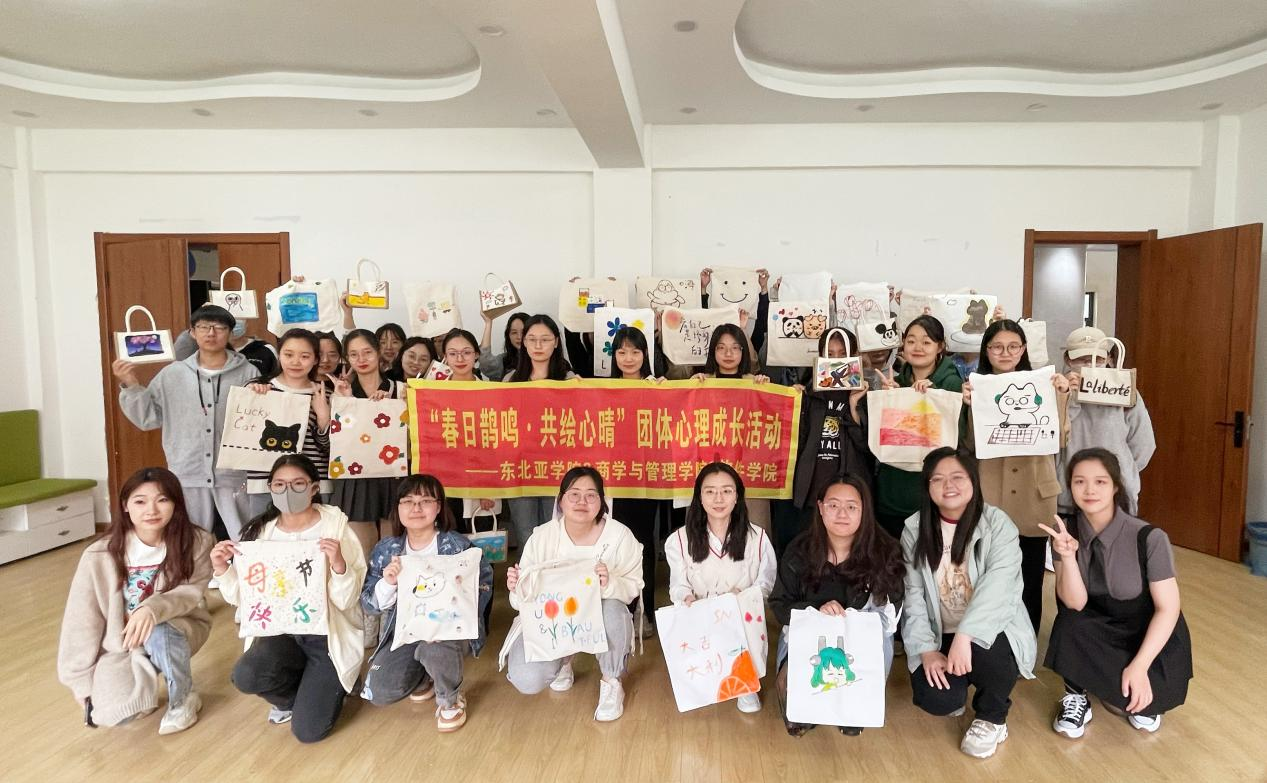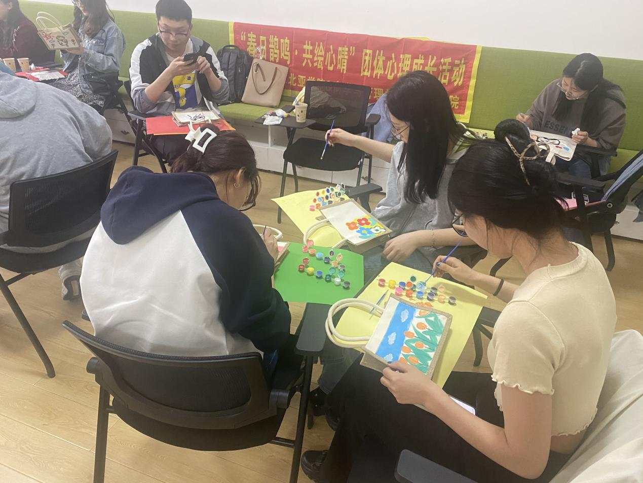 为进一步营造校园心理健康良好氛围,引导同学们正确认识自我,提高心理素质,丰富同学们的课余生活,缓解研究生生活压力,w66旗舰厅、商学与管理公司和东北亚公司三院研究生朋辈心理辅导员联合开展以“春日鹊鸣·共绘心晴”为主题的帆布包涂鸦活动。