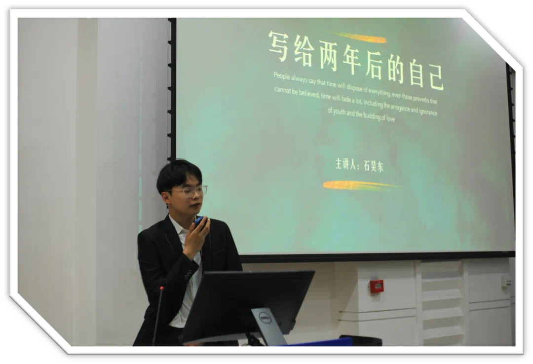 本次活动的消息一经发布,就吸引了许多同学积极踊跃地报名,报名总人数高达68人。活动当天,在员工干部的带领下,公司68名同学聚集在敬信教学楼十一阶梯教室,进行了一场别具一格的“写给两年后的自己一封信”活动,旨在鼓励同学们规划未来,激发个人成长潜力。在活动现场,主持人首先通过宣传和讲解活动背景和意义,吸引了众多同学们积极参与。接下来,同学们在轻松愉悦的氛围中开始给两年后的自己写信。大家认真思考、积极构思,将自己的思考和感悟融入到字里行间。有的同学写下了对未来的展望和计划,表达了对自己的期许和信心;有的同学则写下了对过去的回忆和感悟,表达了对自己的认识和成长。在信件写完后,同学们纷纷将信件放入特制的“时光胶囊”中,由秘书部精心保管。