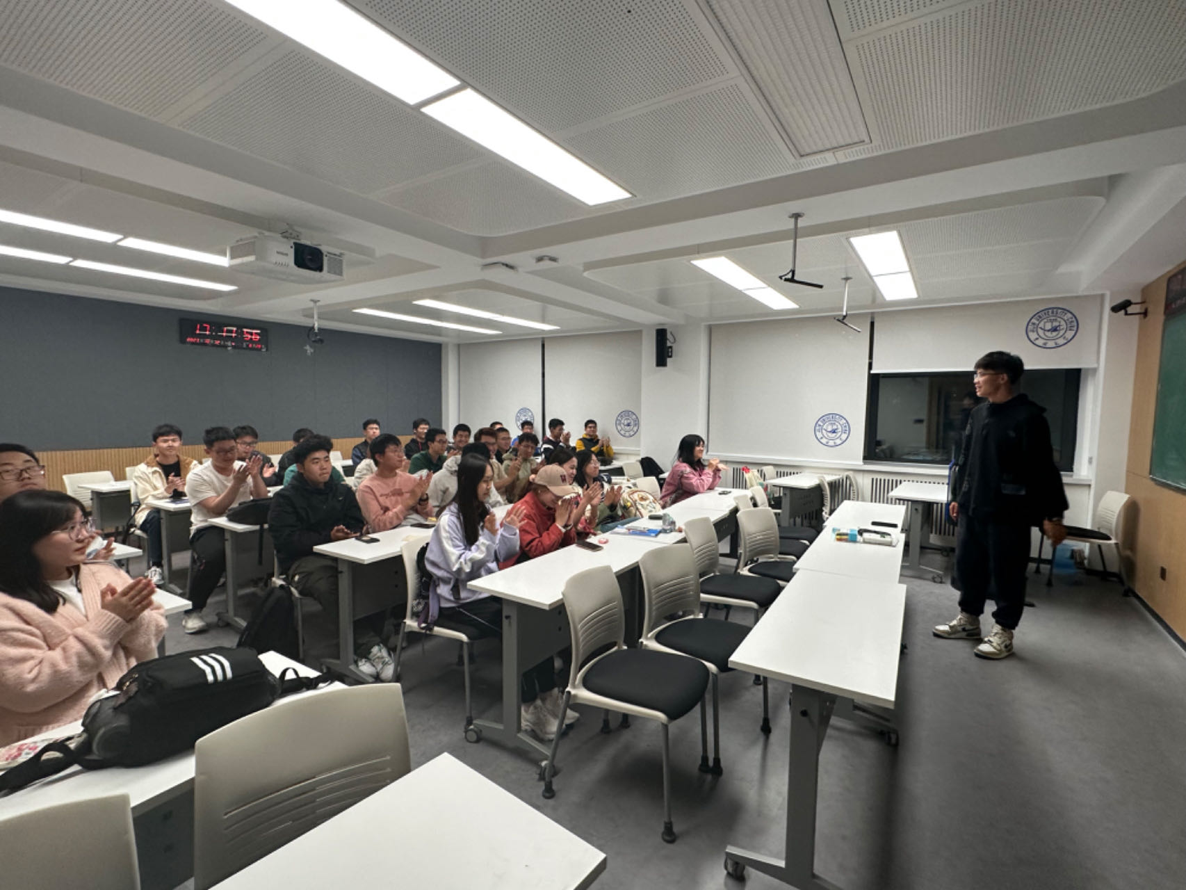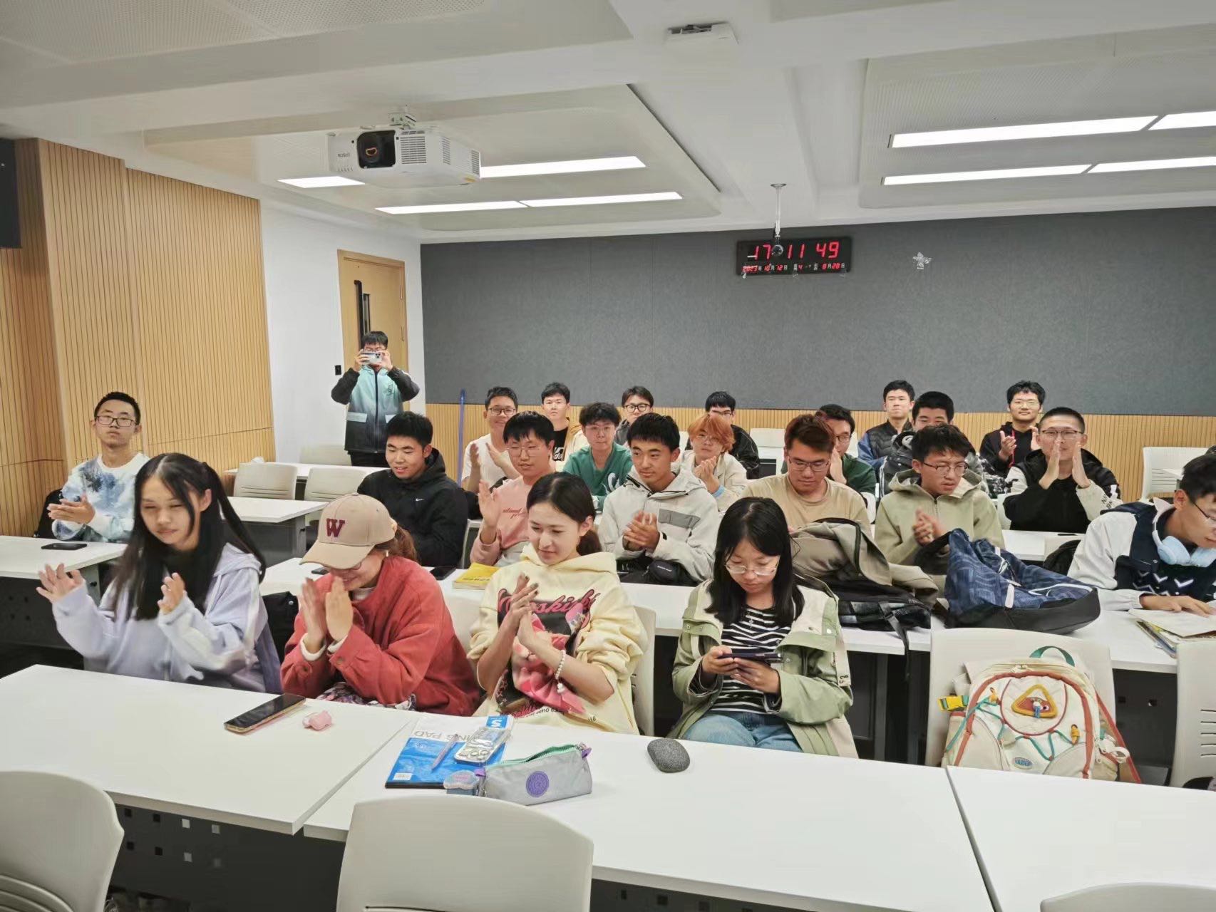 活动的第一个环节是“一分钟鼓掌”的热身游戏,同学们需要在游戏开始前对自己的鼓掌次数进行预测,并在实际游戏过程中记录鼓掌次数,通过对比预测和现实中的次数结果来分享游戏体会。大家从这个游戏中感悟到了设定合理预期目标和遵循职业生涯发展规划路线的重要性,懂得了只有结合具体条件明确自己在大学期间的目标并坚持执行,才会最终实现人生理想。随后,同学们随机分组,在依次进行简短的自我介绍后,正式开始了一系列趣味团体游戏。 在“信任之旅”的游戏中,同学们被分为两组,一组同学的双眼被蒙住来体验盲人的感觉,另一组同学作为领路人,在没有语言沟通的情况下带领第一组同学走到终点,培养了同学之间的信任感与合作精神。在“集体登陆”的游戏中,各小组的同学需要全部站到一张A4纸大小的范围内,大家集思广益,不断尝试,通过默契的配合顺利地完成了游戏的任务。在“人体字母”的游戏中,同学们利用自己的身体摆出不同的字母造型,合力完成了单词的拼写,展现出了强大的团队凝聚力。最后,大家拿起手中的画笔,以小组为单位,共同绘制出了团体树并写下了对于老员工活的美好期许,活动在一片欢声笑语中圆满结束。