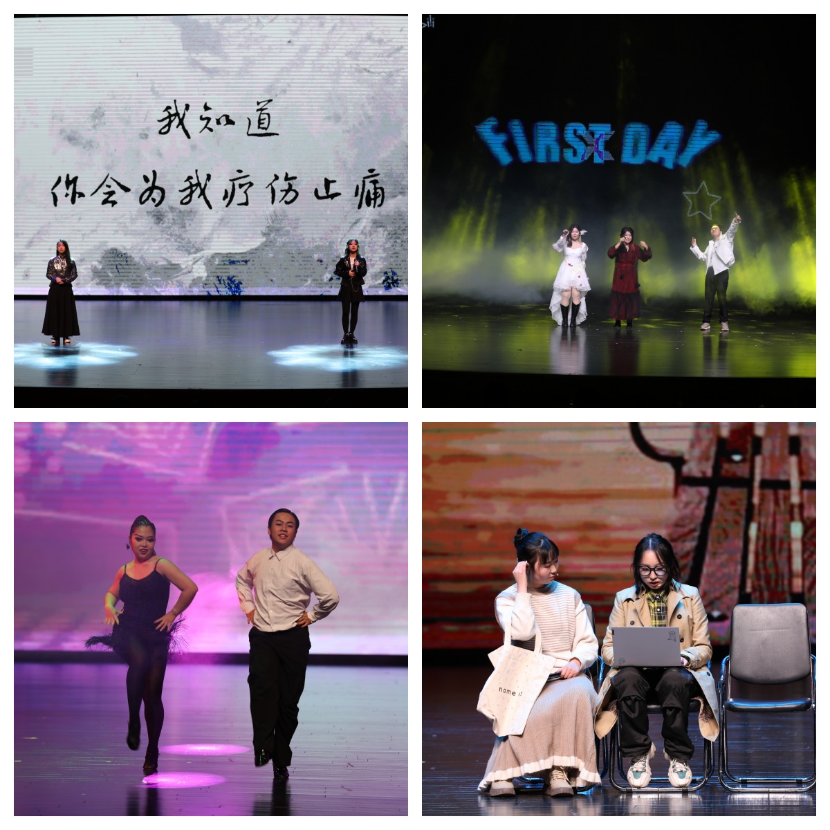 晚会在预热视频中拉开帷幕,跟随镜头我们重温了新生从开学到现在老员工活的足迹,并一起回顾了紧张热烈的晚会幕后筹备历程,激昂的音乐将大家的期待值拉满,正式表演随即开始。