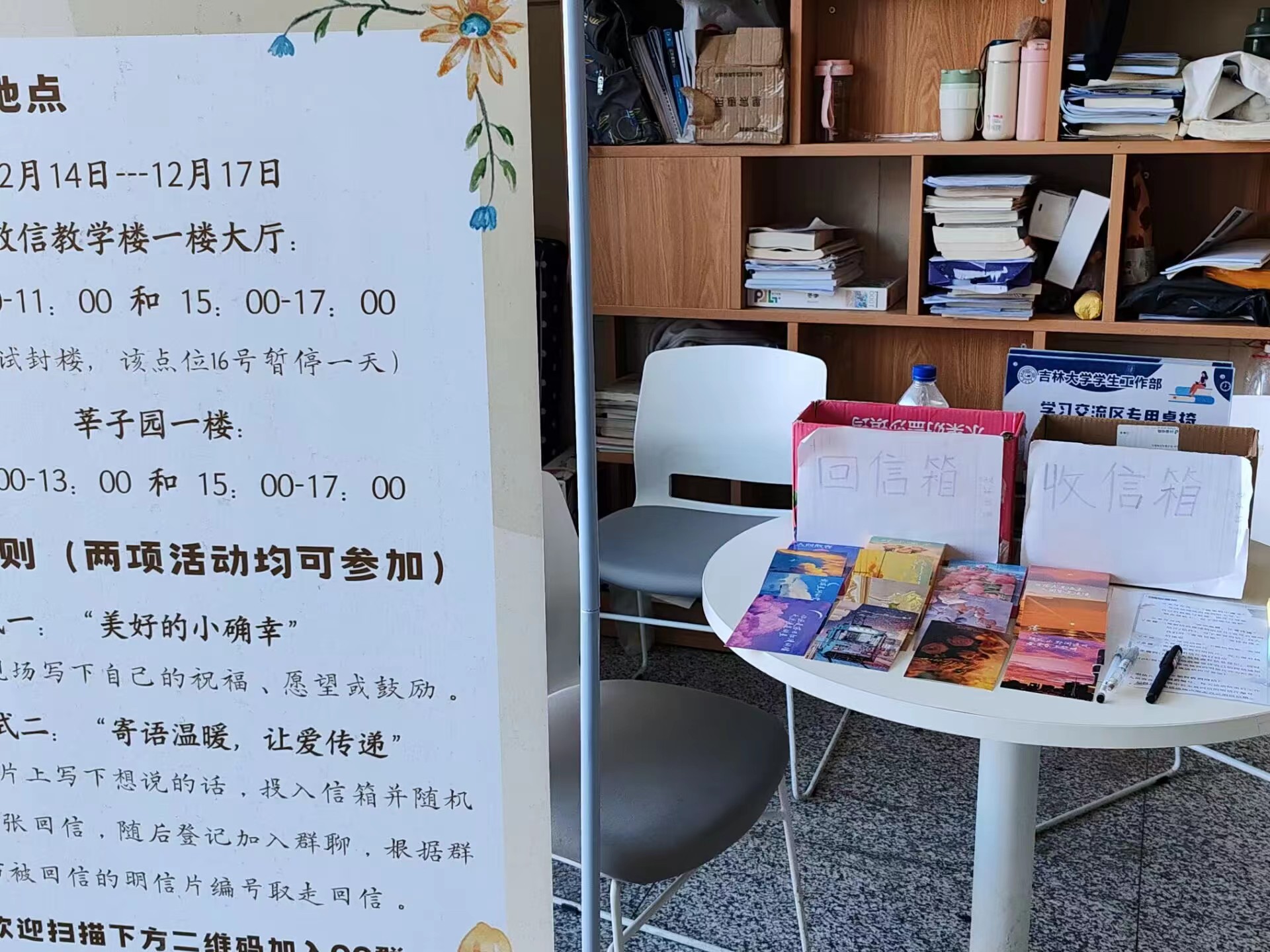 通过这次活动,不仅志愿者同学们收获了宝贵的工作经验,参与活动的同学们也感受到了最真诚的祝愿,虽然只是未曾谋面的相互扶持与关心,却帮助大家共同应对困难与挑战,希望这一条条的寄语,不仅仅能使吉大人相互取暖,更能成为彼此期末季节的慢慢怀念。
