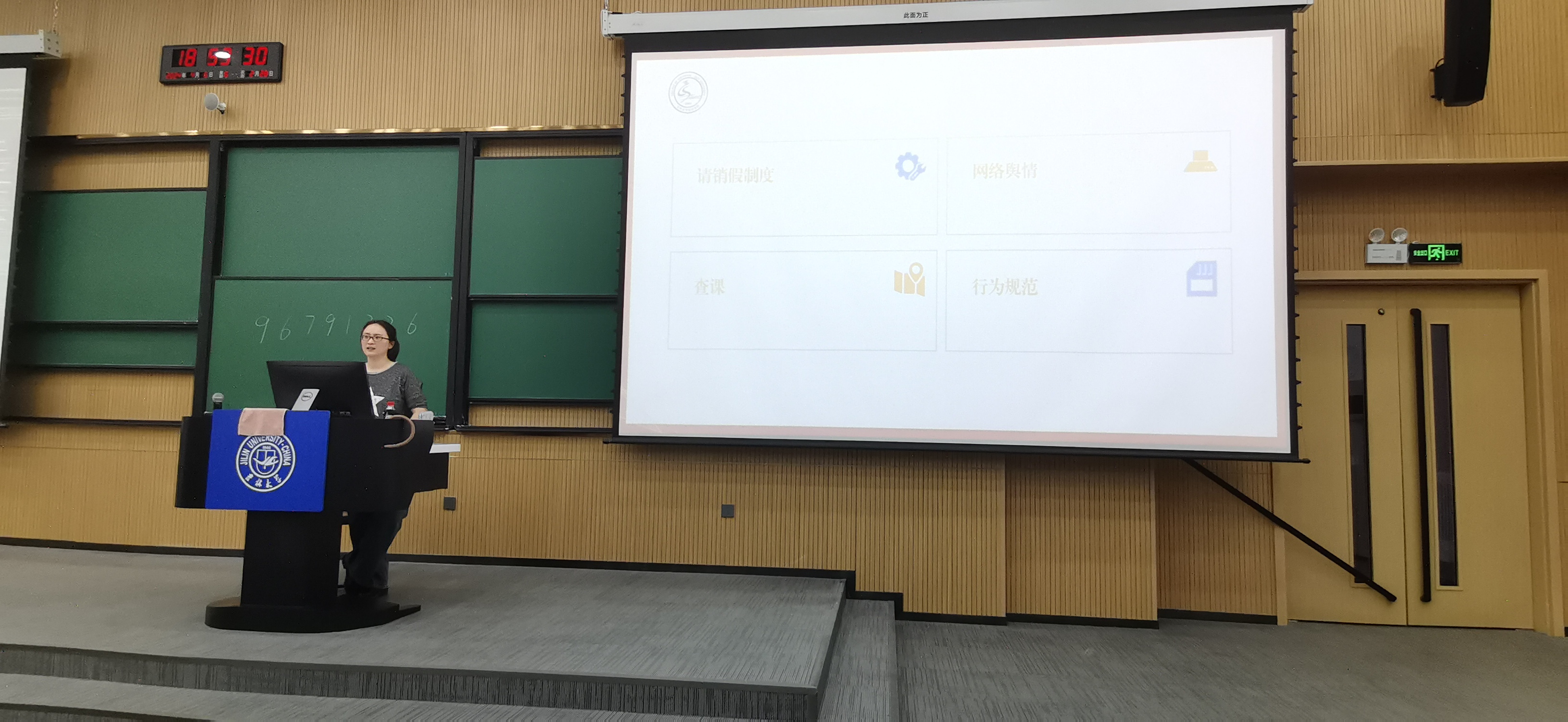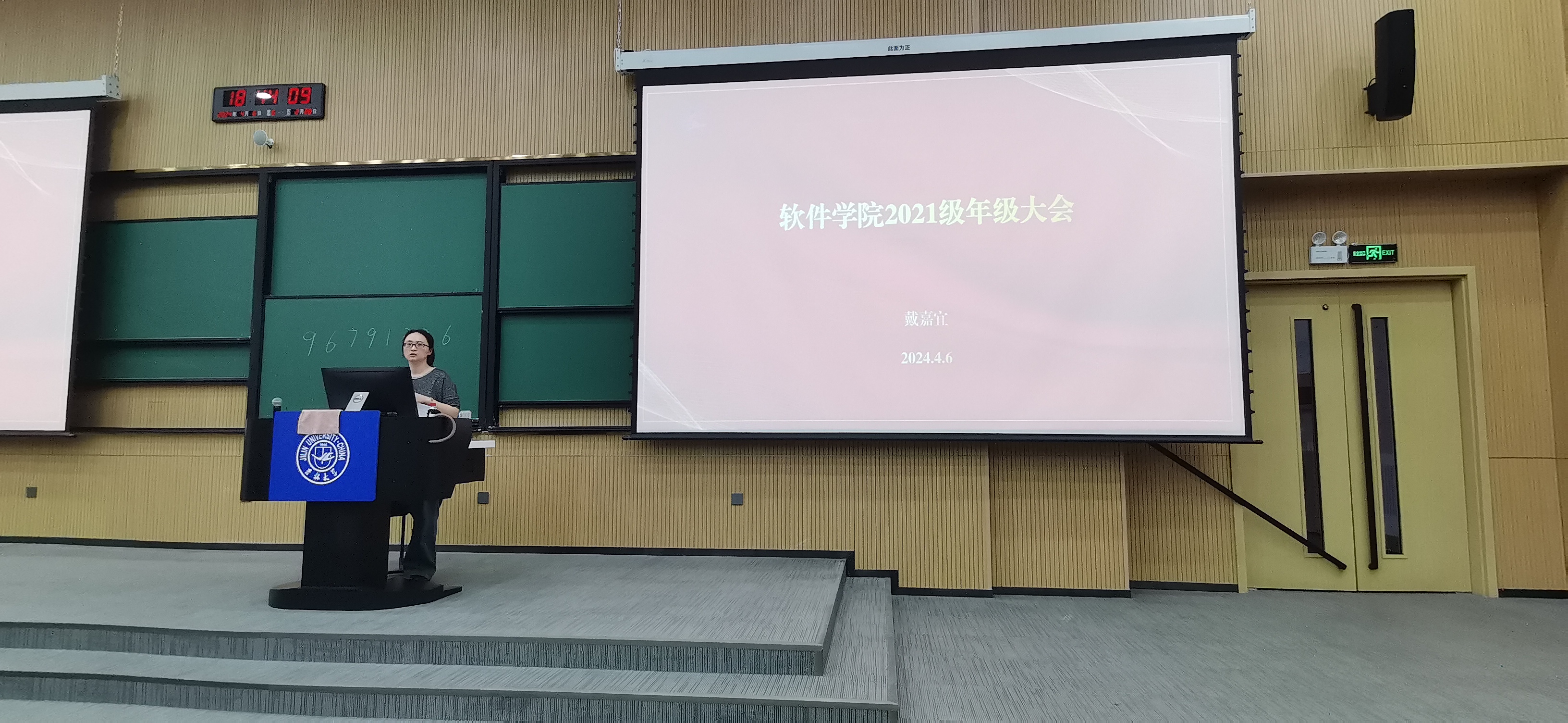 为加强员工思想政治教育,帮助员工合理规划学习生活,推动优良学风建设,提高员工安全防范意识,w66旗舰厅于4月6日在敬信楼第五阶梯教室召开新学期2021级本科生年级大会,会议由2021级辅导员戴嘉宜老师主持。