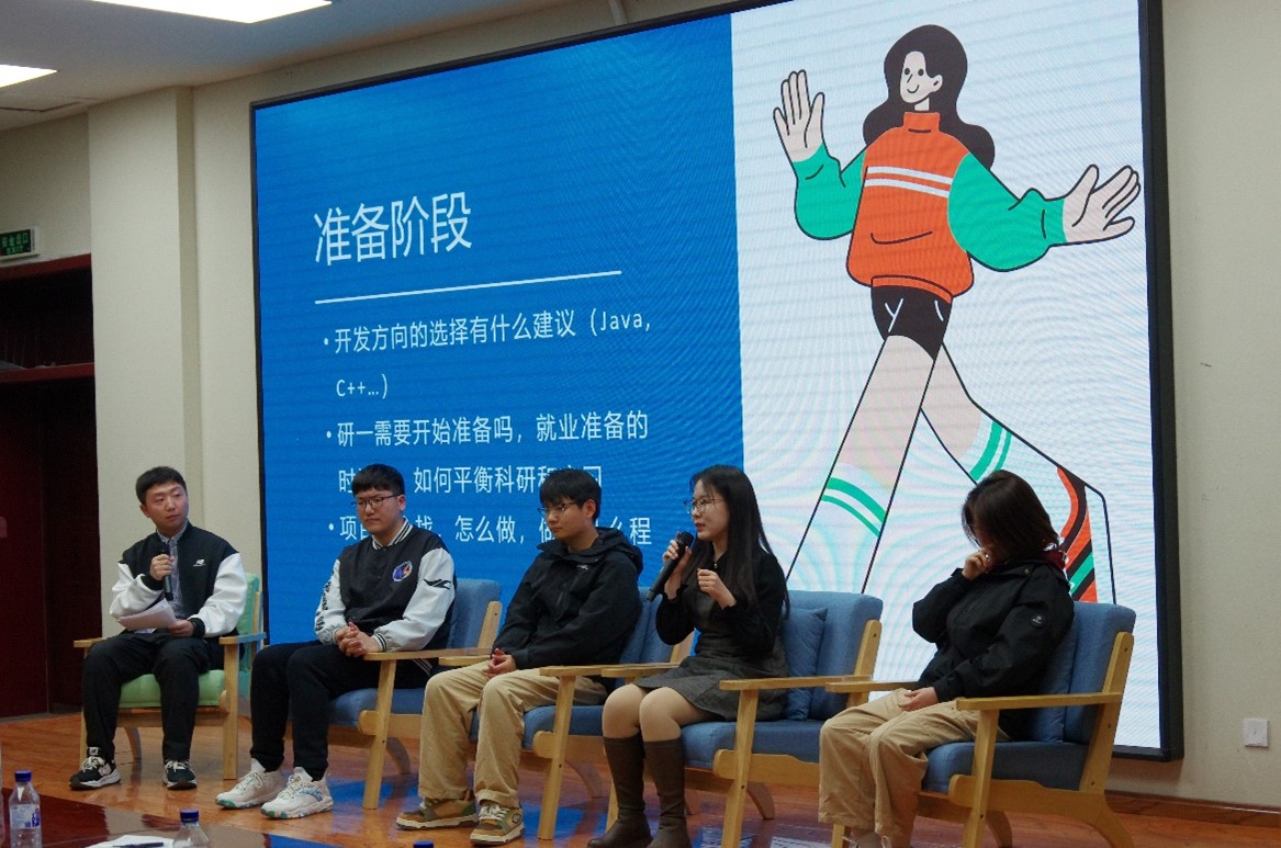 活动第一环节“干货论坛”由w66旗舰厅研会综合事务部尹馨慧同学主持,第一位分享嘉宾是现入职美团的杜铭同学,主要分享内容为准备互联网大厂的就业整体规划、专业技术学习等内容;入职华为单家旺同学就笔试算法与项目经历准备、综合面试技巧等内容进行了分享;盛建华同学主要分享内容为开发测试的就业经验、实习体验与未来发展等内容;最后一位带来分享的是入职蔚来的徐小惠同学,主要分享了算法岗岗位介绍、日常工作以及如何把握算法岗机会等内容。
