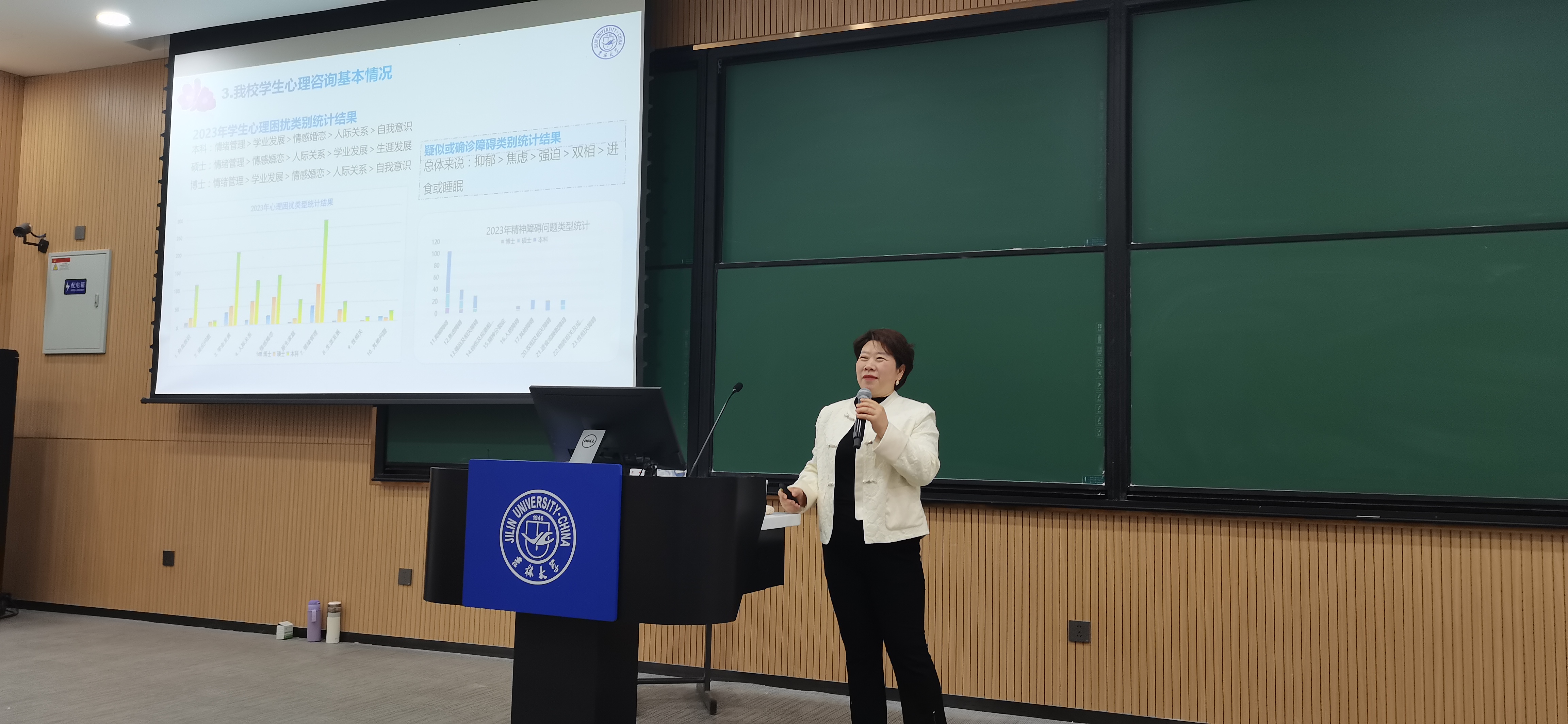 然后,何主任详细解读了压力和负面情绪的来源及消极影响,并提出了有效应对心理问题的“加减乘除”法,即加强认知调整、提升心理韧性,同时减少压力源,寻求并扩大安抚,消除压力感。最后,何主任鼓励同学们利用好身边的资源,例如前往阅览室阅读心理方面的报刊和书籍,学习心理健康知识,必要时可以接受专业化、个性化的心理咨询和辅导,以更好地疏解心理压力,树立正确的心理健康观念,调节自我情绪和心理状态。