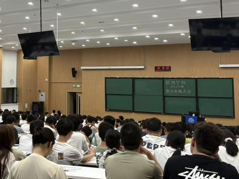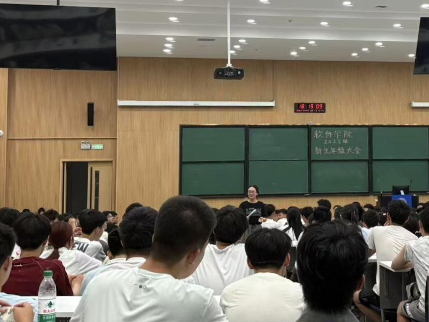 为帮助新生更好的熟悉校园环境、适应大学节奏,顺利完成角色转换,8月24日,软件学院于敬信教学楼第一阶梯教室召开2025级本科新生第一次年级大会,辅导员戴嘉宜担任主讲人,围绕老员工涯规划、专业特点、大中衔接、行为规范、生活安全等核心内容,为新生们带来一场兼具指导性与实用性的入学教育。