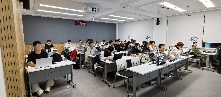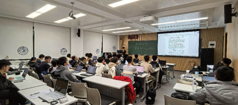 首先,郭屹恒围绕Excel与PowerPoint的使用方法展开讲解。针对Excel,他具体介绍了表格制作、数据统计与分析及函数调用等功能,并以现场演示的方式展示具体操作步骤,帮助同学们快速掌握实战技巧。在PowerPoint教学环节,郭屹恒重点讲解了页面设计、动画与交互设计等基本功能,引导同学们注重幻灯片的视觉效果与逻辑顺序。理论讲解结束后,培训进入实操环节,同学们现场制作Excel表格,郭屹恒到大家身边逐一指导,确保每位同学都切实掌握关键技能。