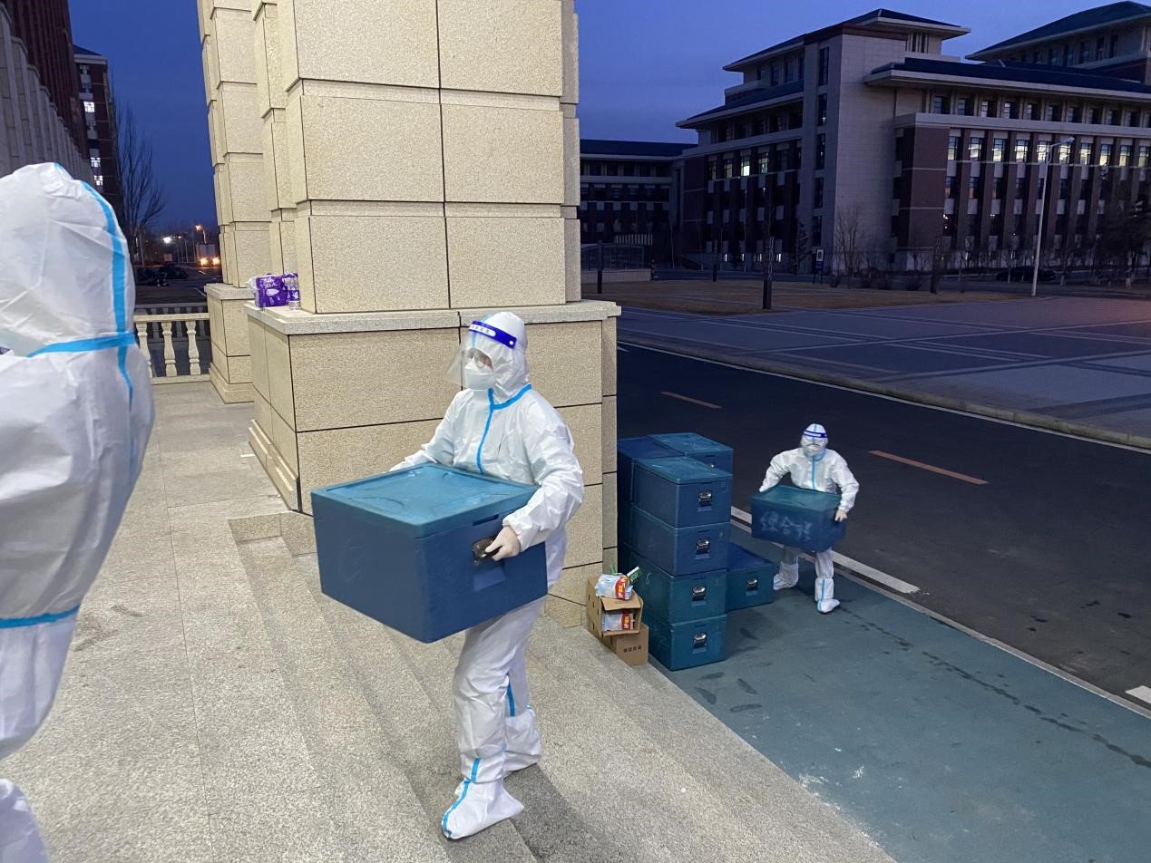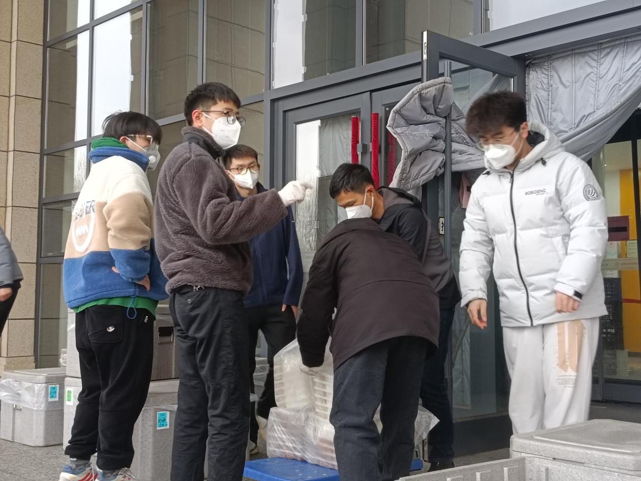 2022325日,公司研究生志愿者在辅导员老师的号召下主动承担起北苑四公寓全楼物资配送任务,迅速成立了三支志愿者队伍:第一支由2019级党支部书记潘得新带领的5人志愿先锋队,协助楼长负责全楼整体工作;第二支由2021级党支部书记高磊带领的30人纵向配餐志愿者队伍,负责将门口的所有物资转运分发给各楼层同学;第三支由w66旗舰厅研会主席韩文强带领的30人楼层志愿者队伍,横向为公司内部同学服务。