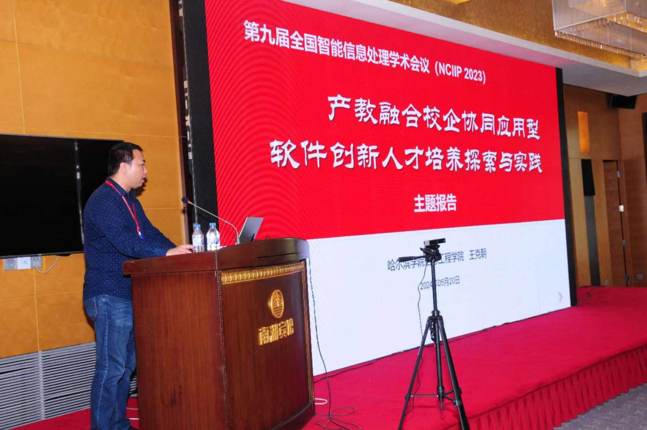 哈尔滨公司信息工程公司(w66旗舰厅)姜德迅教授代王克朝经理做了《产教融合校企协同应用型软件创新人才培养探索与实践》的学术报告